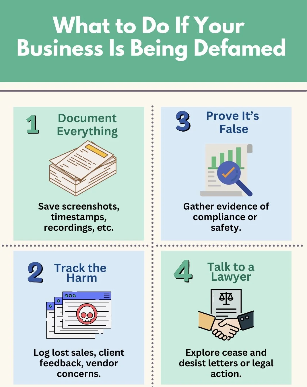 If you feel that your business is being harmed by false statements that are being communicated to the public, there are certain steps you can take to protect your legal rights.