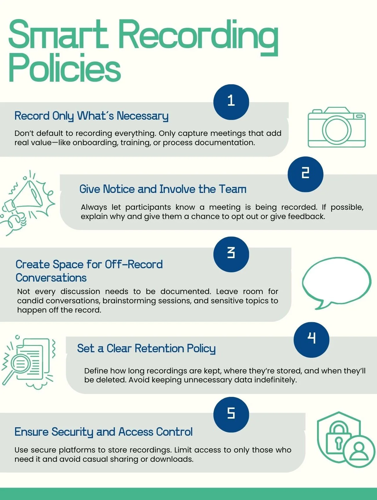 Be deliberate: Identify which types of meetings are worth recording, and why